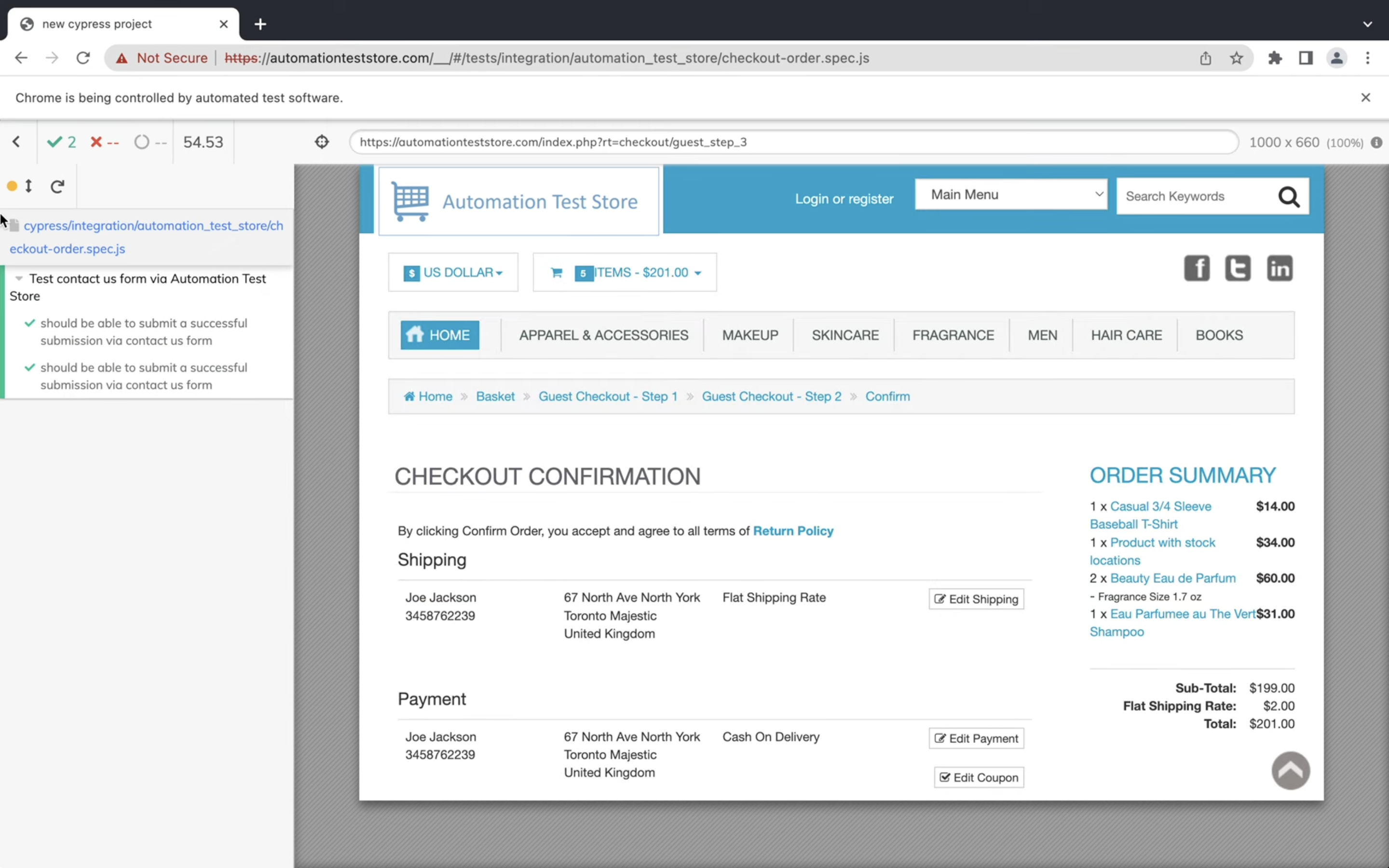 Implemented Automated GUI Testing using Cypress for Sample Ecommerce website. Please click on the video demo link to watch the video demostration and View Source for git code.