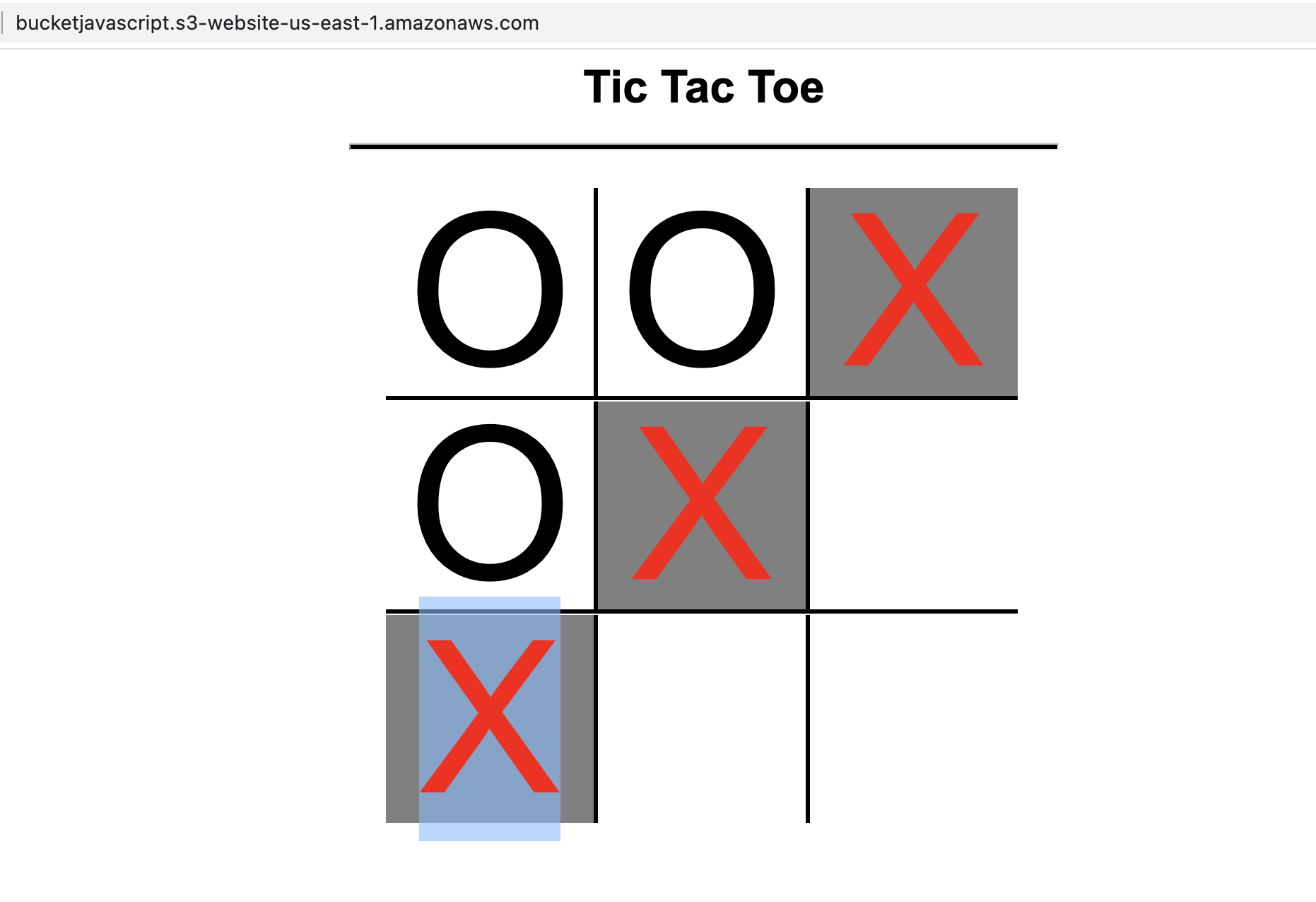 Developed online Tic-Tac-Toe game using Javascript and HTML/CSS. The game has been manually deployed in AWS-S3 bucket. Click on the view website button to play Tic-Tac_Toe game. Have Fun!